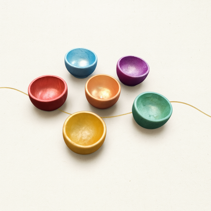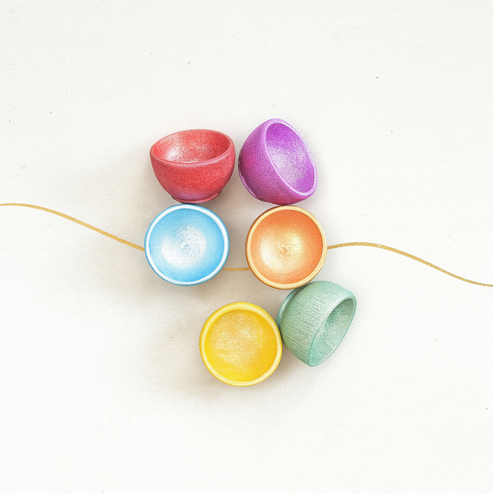مجموعة رائعة من 6 أوعية خشبية بألوان مشرقة