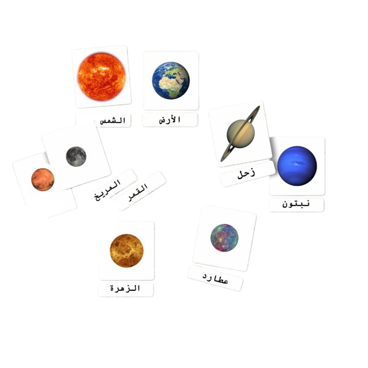 تحتوي المجموعة على بطاقات تعليمية لكل كوكب، مع صور واقعية ومعلومات مبسطة تناسب أعمار الأطفال.
