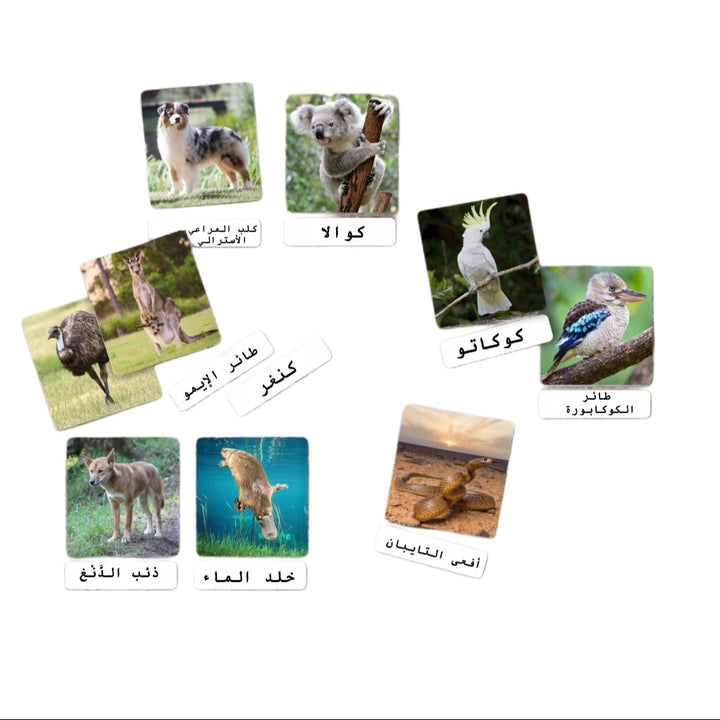 بطاقات تعليمية تفاعلية تُعرّف الأطفال على الحيوانات الفريدة التي تعيش فقط في أستراليا، القارة المعروفة بتنوعها البيولوجي الغريب والمذهل. صُمّمت بأسلوب يناسب التعليم المبكر ومنهج مونتيسوري، لتعزيز الفضول والمعرفة بالعالم الطبيعي.