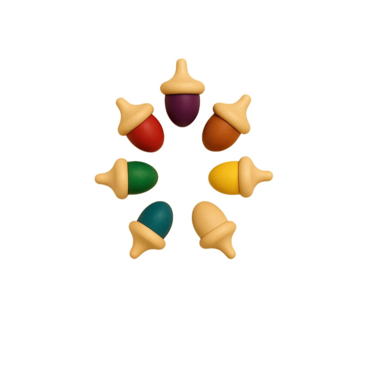اصنع تجربة تعليمية ممتعة مع مجموعة حبات البلوط الخشبية الملونة، المصممة خصيصًا لدعم التعلم الحسي واللعب المفتوح بنمط مونتيسوري.