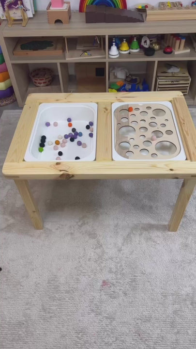 طاولة حسية متعددة الاستخدامات – تصميم عملي وبسيط لأنشطة الطفل اليومية! 🪵