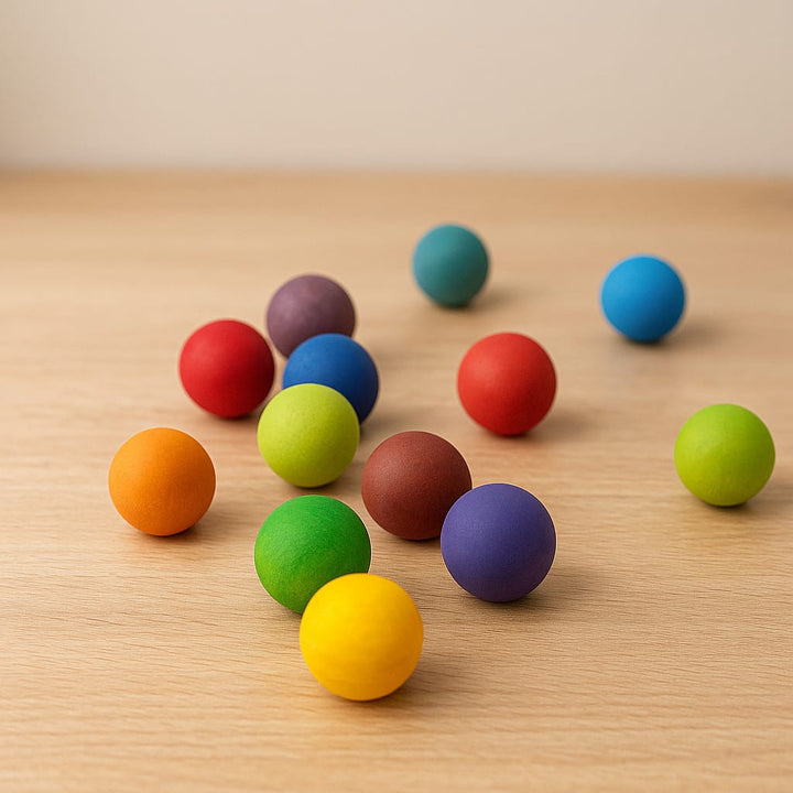 مجموعة رائعة مكونة من 12 كرة خشبية ملونة بألوان زاهية وجذابة، مصممة بعناية لتناسب أيدي الأطفال الصغيرة وتلهمهم بالتعلّم من خلال اللعب. تُستخدم هذه الكرات في أنشطة متنوعة مثل التصنيف، العد، التعرف على الألوان، التوازن، واللعب الحسي التفاعلي ما يجعلها أداة تعليمية مثالية في بيئة منزلية أو صفوف الروضة على حد سواء.