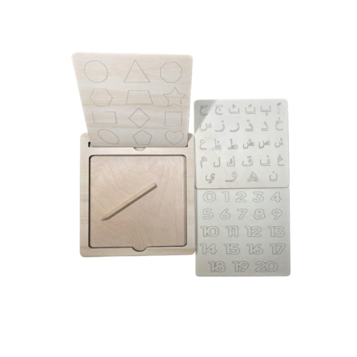 يُعد هذا اللوح الخشبي التفاعلي مثاليًا لتعليم الطفل أساسيات الكتابة من خلال التتبع بأداة خشبية مرفقة.