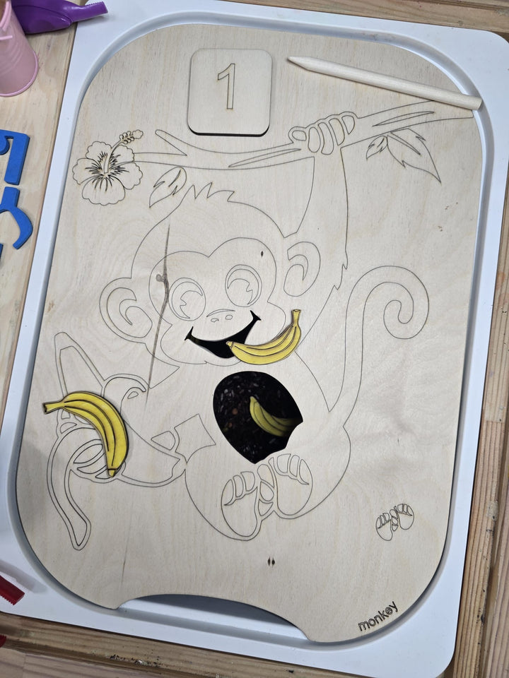 🐒 لوح خشبي “إطعام القرد” 🍌
