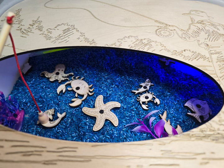 اصطاد المرح والمعرفة مع لعبة صيد الأسماك الحسية الخشبية!