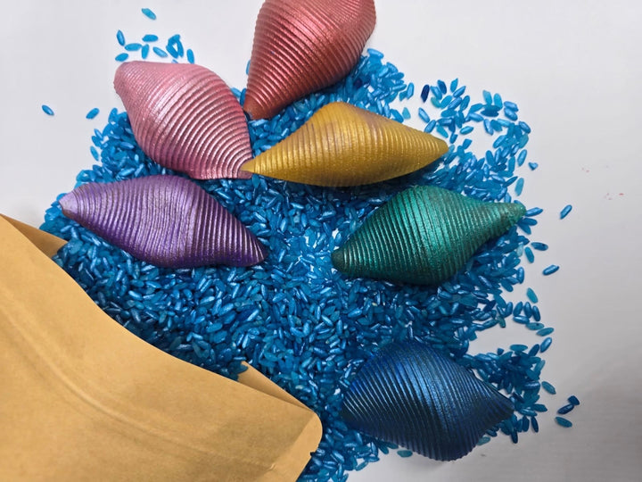 • يمكن ملء الحوض بمواد حسية مثل الأرز أو الرمل الملون لتعزيز التجربة