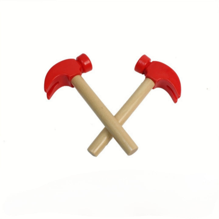 📦 الطقم يحتوي على: مطرقتين خشبيتين بلون أحمر جذاب