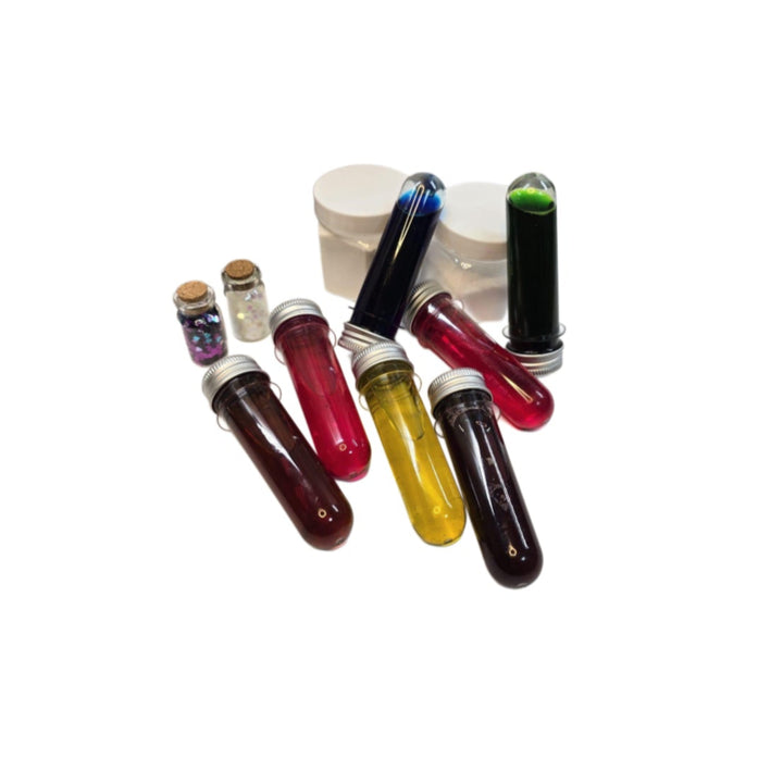 أنابيب شفافة تحتوي على سوائل ملونة وجذابة (آمنة وغير سامة).